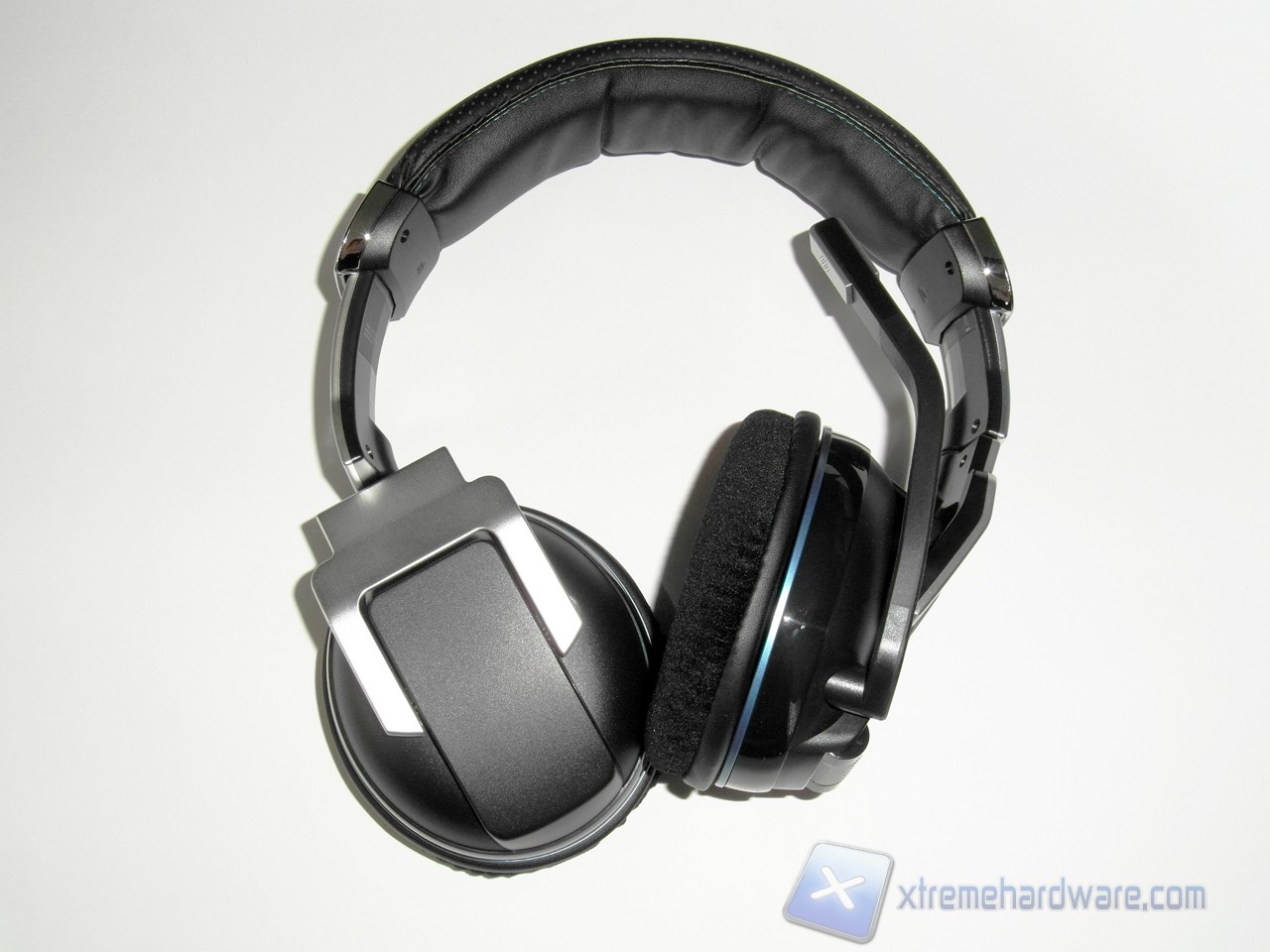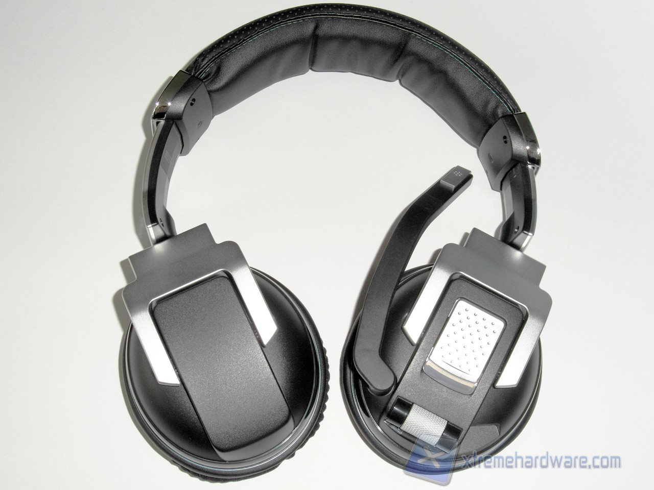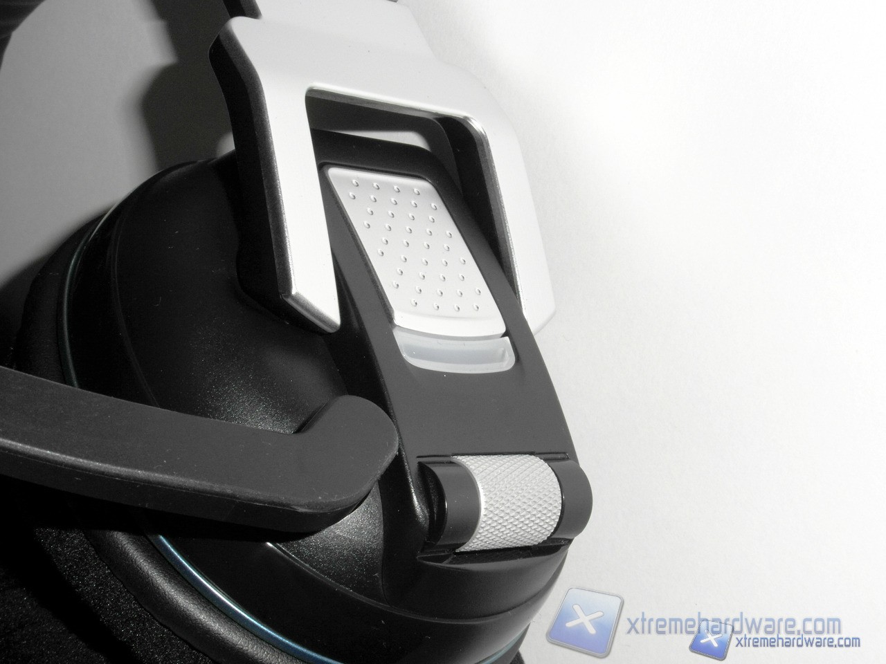 Il padiglione DX è spoglio, infatti tutte le funzioni sulla cuffia sono state posizionate sul padiglione SX, dove è presente la possibilità di regolare il volume mediante rotella metallica (simile a quella della Corsair K60), il connettore di alimentazione, il pulsante di accensione e ovviamente il microfono.