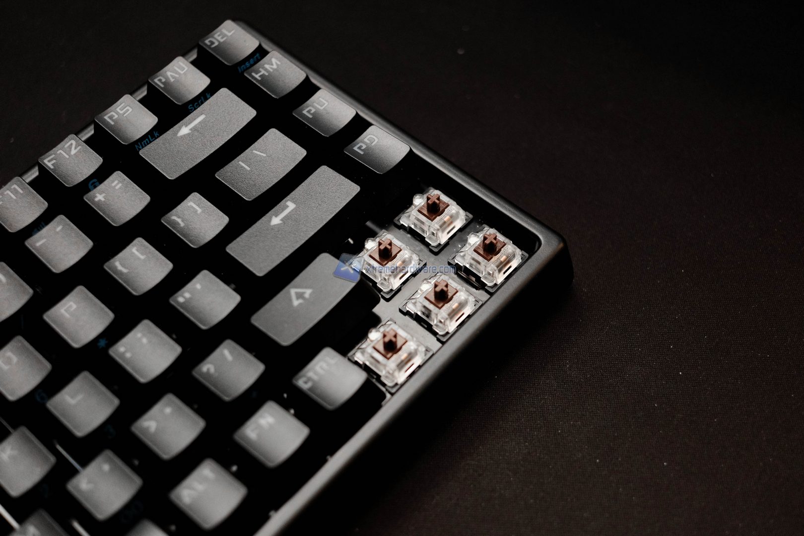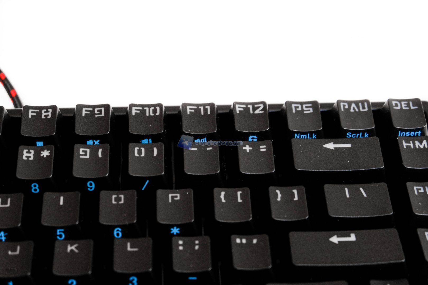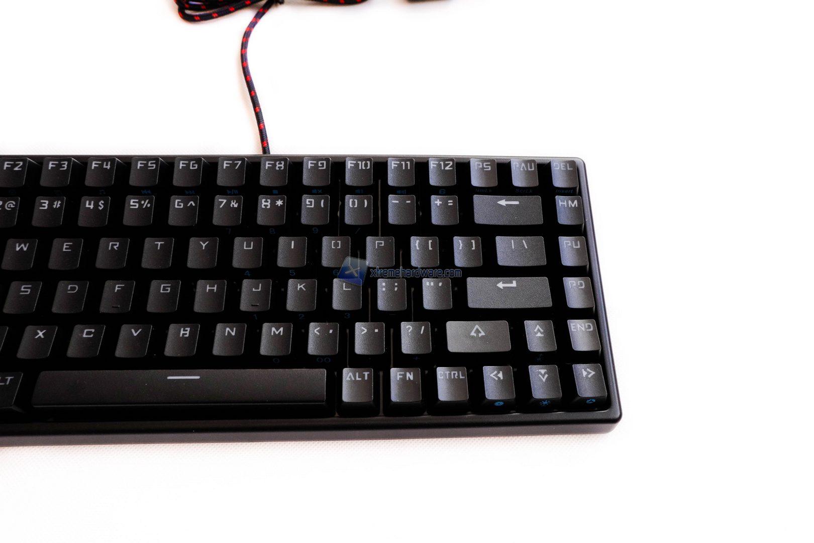 Gli switch meccanici che equipaggiano questa tastiera sono marchiati Outemu, i quali richiedono una forza di attuazione leggermente superiore, a parità di switch, rispetto ai Cherry MX. Ogni fila di tasti presenta un led di colore bianco, così da avere una retroilluminazione perfetta e davvero utile durante le ore notturne.